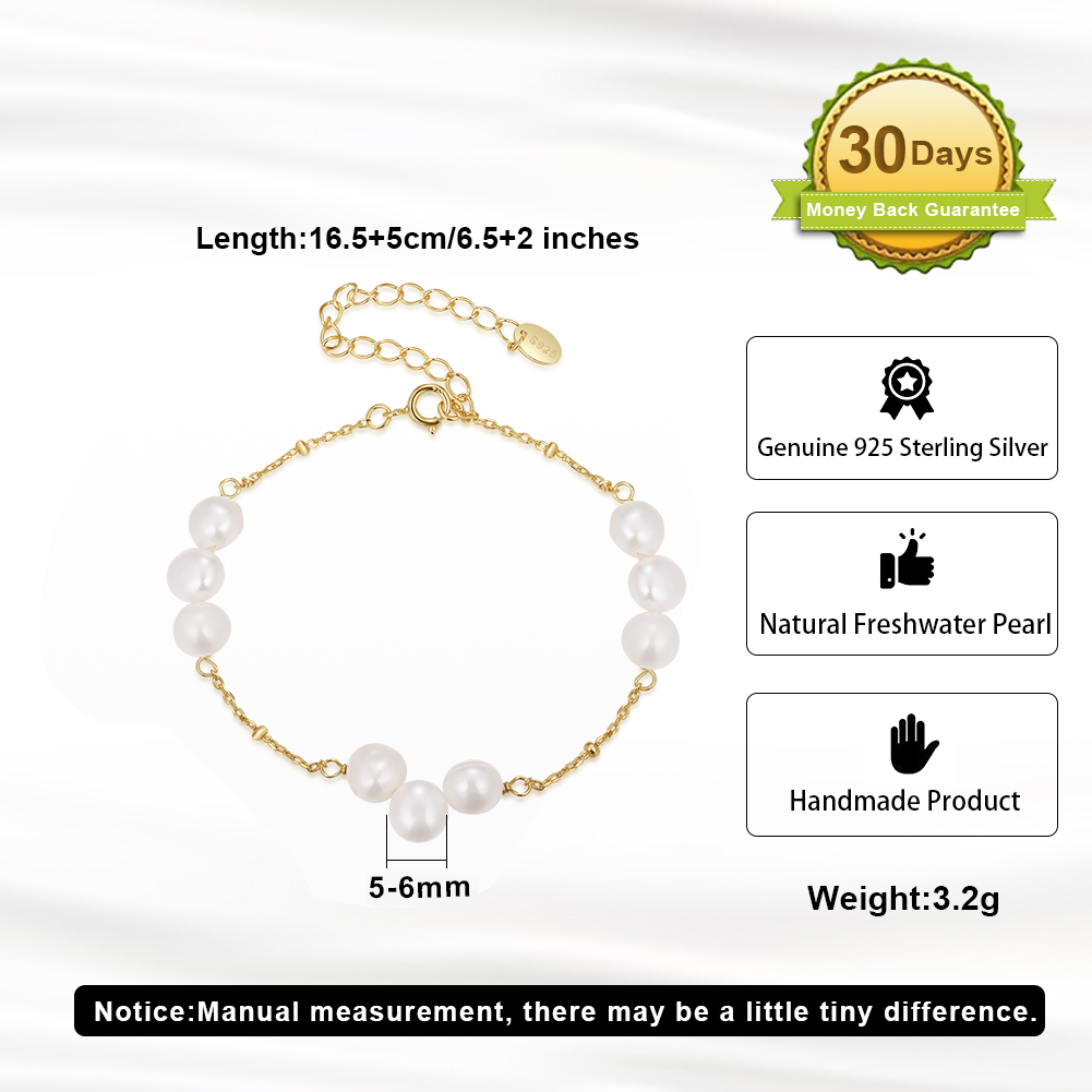 Bratara din argint 925 placat cu aur 14k si perle naturale de cultura