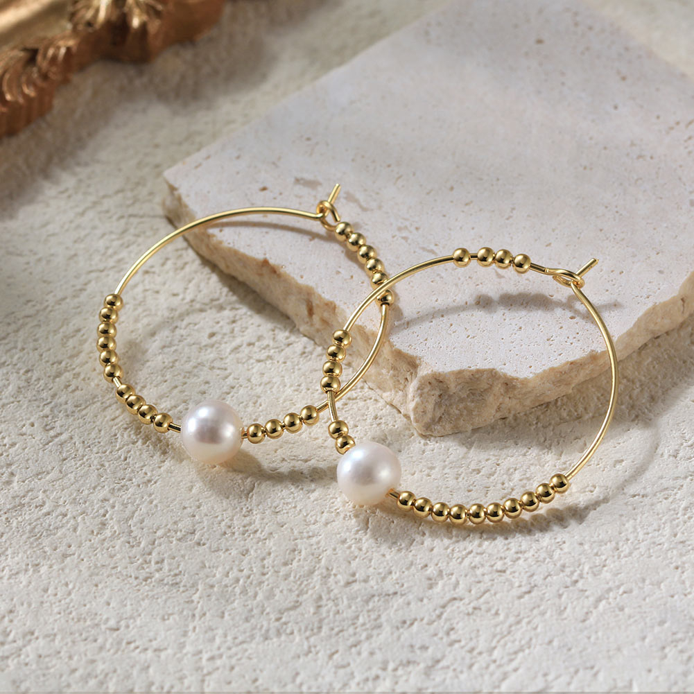 | Cercei din argint 925 placat cu aur14 k si perla naturala de cultura |